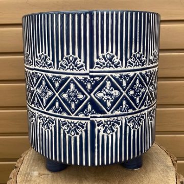 DEBOSSED STONEWARE FOOTED PLANTER, BLUE