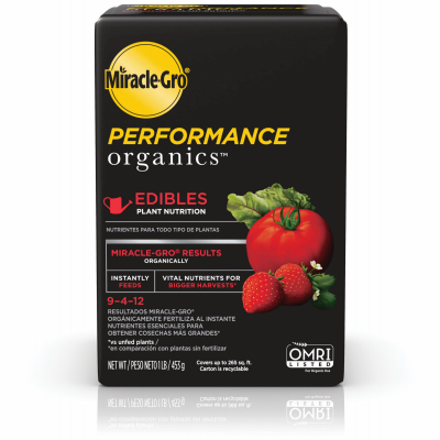 1 lb Miracle Gro Performance Organics Edibles Plant Nutrition, 9-4-12, Organic Plant Food Formulated for Fruits, Vegetables, Herbs and Tomatoes, Feeds Instantly, Promotes Abundant Harvest, OMRI Listed.