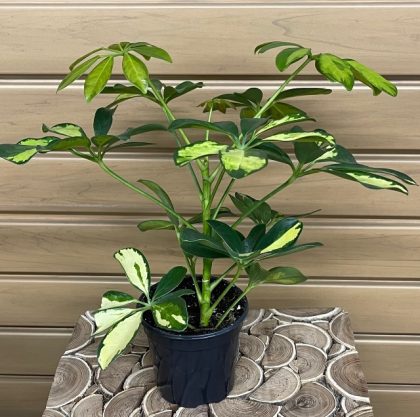 Arboricola or umbrella plant is an easy to grow houseplant. It will grow to 3 ft. tall and 2.5 ft. wide. It will do well in a wide variety of light conditions but will do best in bright to medium light. Fertilize twice a year during spring and summer. Toxic to pets and kids. Purifies the air.