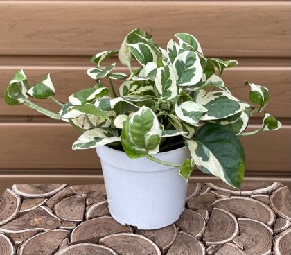 One of the most forgiving houseplants. Great in baskets or top shelves due to its trailing habit. Can be trimmed if out of control. Can take anything from sun to bright indirect to medium light. Great and easy to grow plant. Do not overwater.