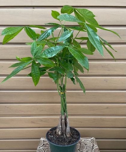 Pachira also called Money tree requires bright indirect light. It likes well drained peat based soil. Let soil dry out between waterings. It makes a great gift since it is known to bring good luck to a home. Non-toxic.