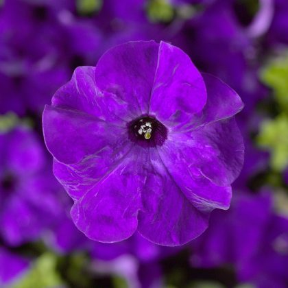 Being a grandiflora type TriTunia Blue offer a large solid ink blue blossom. Vigorous uniform habit.