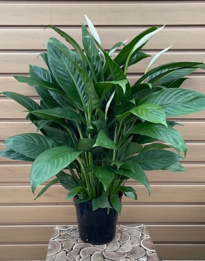 Peace lilies are an adaptable and a low-maintenances houseplants. Provide bright indirect light. Keep soil moist but do not overwater. Provide humidity, especially in winter. If using tap water, let it sit in an open jar over night before watering, in order to avoid brown leaf tips. Toxic to pets and kids.