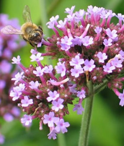 Also known as purple top verbena, these verbenas are tall and airy with much space between the wide branch stems with round clusters of tiny violet purple flowers blooming from the top. The stiff stems allow the plant to stay upright without falling over and make for lovely cut flowers. These will bloom from midsummer through the fall, will attract pollinators and contrast well with pink, orange, and yellow flowers.