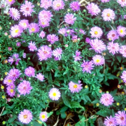 Blooming from late summer and into fall, the semi-double purple flowers contrast with its yellow centers. The flowers are a favorite of pollinators and butterflies. It’s long lasting blooms also make a great cut flower. Excellent as a border plant in the perennial garden.