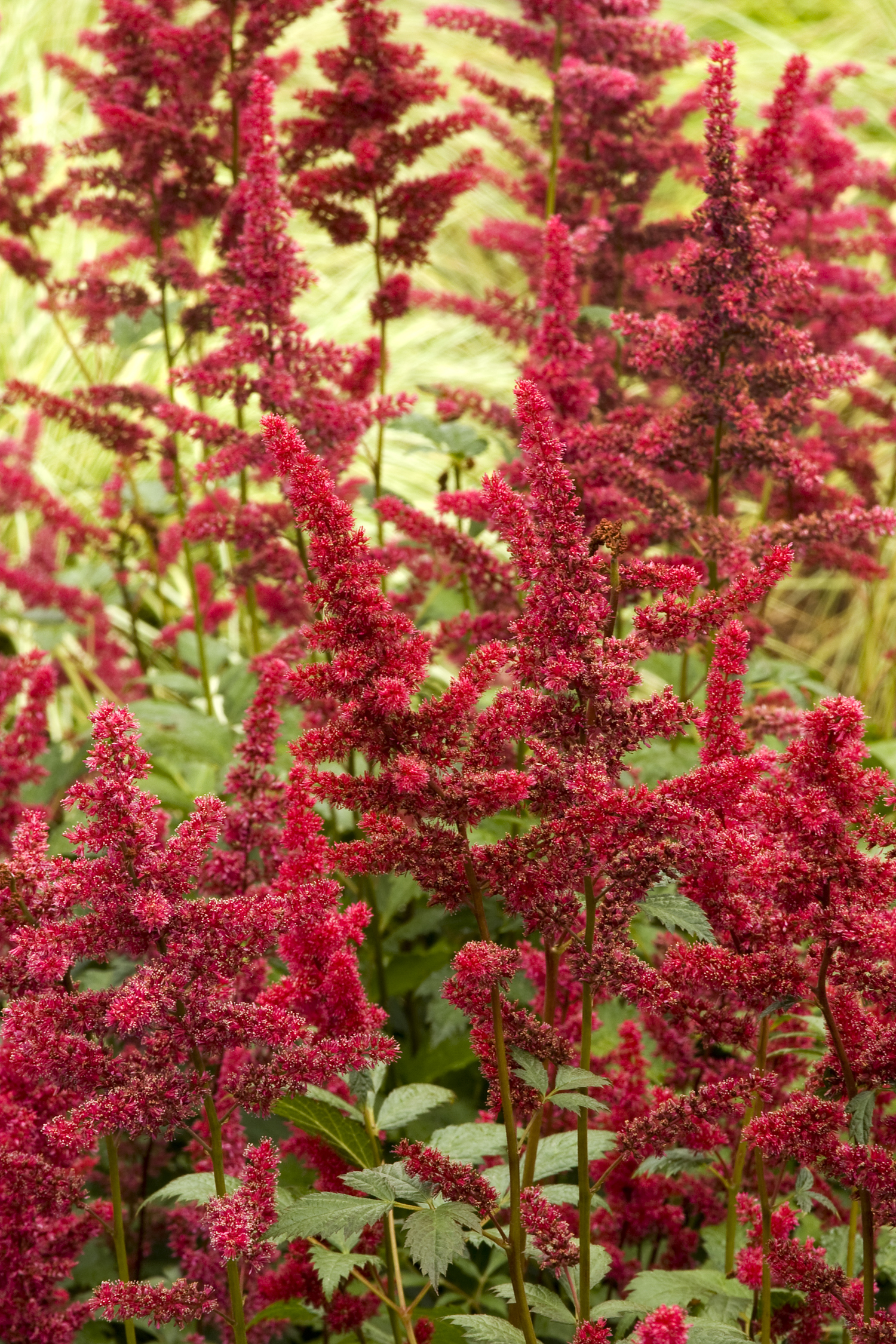 A showy bloomer for beautiful summer color in shaded areas. Tall, feathery blooms of deep garnet-red valued for their light, airy quality rise above graceful mounds of bronze-green foliage. Thrives in dappled or full shade borders.