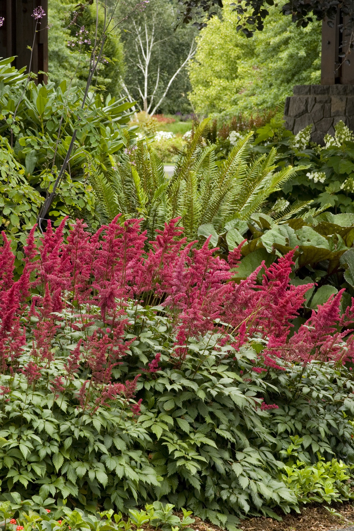 Red Sentinel Astilbe. Showy, scarlet red plumes are a popular cut flower for shade gardens. Perfectly content in shady woodland gardens or borders, but equally happy in the dappled light under moisture-loving shade trees. An herbaceous perennial.