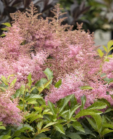 Enjoy more blooms on this exceptionally compact variety. Produces copious plumes of rosy pink, feathery flowers. Perfect in woodland gardens for contrast against darker foliaged plants and to accent other Astilbe colors. Herbaceous.