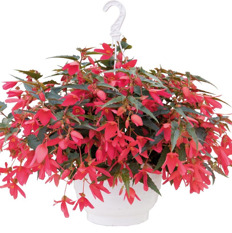 A Begonia boliviensis hybrid, offers bigger flowers and brighter colors than most other varieties.With a naturally mounding habit, Begonia 'Groovy Rose' will gently cascade from your hanging basket, lasting all summer and well into fall.