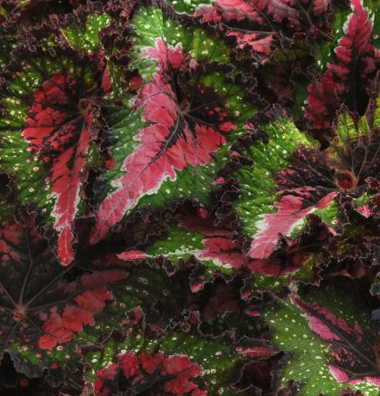 The striking foliage of Jurassic Rex begonias are an eye-catcher and an excellent addition to container gardens. Best grown in shade. Can be a great indoor specimen.