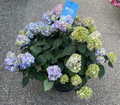 BloomStruck®, part of the Endless Summer® Collection, is another breeding breakthrough. After 50 days below 0° F, and a low of -28° F, BloomStruck® flowered heavily the following spring on old growth and put out loads of blooms on new growth. In addition to being cold tolerant, BloomStruck's glossy dark green leaves are more heat resistant, which prevents wilting in mid-day heat. This reblooming mophead has rounded flowers averaging 3.5 – 5″ across in intense rose-pink, violet or blue, depending on pH levels. Flower heads are held upright on striking ruby red stems, adding to this plant's retail presence.