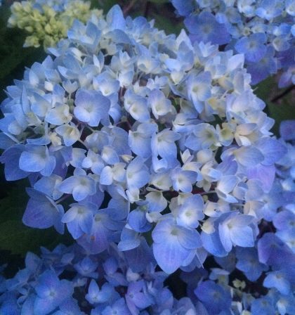 Striking ruby-black stems support big mophead flowers on this exquisite reblooming hydrangea. A superb border shrub for color throughout summer; blue in acidic soils and pink in more alkaline soils. Flowers age to a vintage cream-splashed green color. Prized for cut or dried flower arrangements. Deciduous.