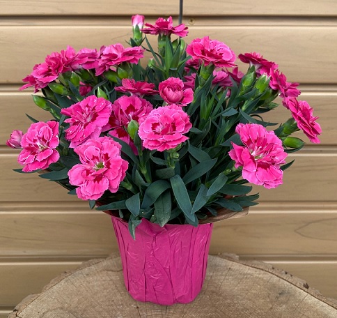 Carnations should have roughtly 4-6 hours of light per day. Keep soil moist, but not wet. Remove dead flowers to promote new blooms.