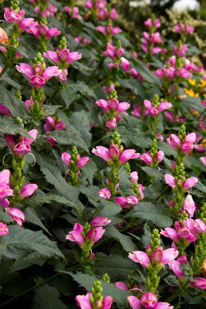 Cheerful spikes of pink snapdragon-like flowers emerge above the spreading foliage in late summer. Ideal middle-of-the-border plant for contrasting color and foliage among dwarf shrubs. Thrives in shaded settings and prefers moist conditions. An herbaceous perennial.
