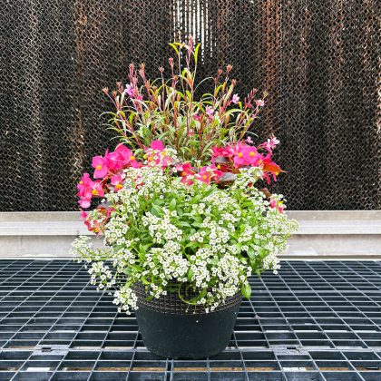 A great small combo in pink and white with some height with a sweet fragrance from the alyssum.