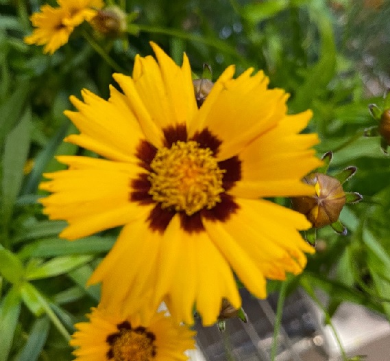 Delightful golden yellow petals with a deep burgundy center bloom from late June through October. A very long blooming and undemanding plant.