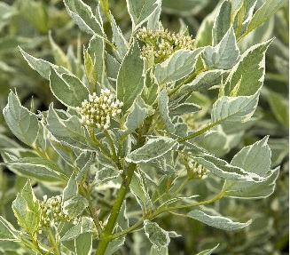 Mint green variegated leaves with creamy white margins become tinged with pink or red in fall. Compact and densely branched with chartreuse stems that add character to the winter landscape. A wonderful shrub for all seasons! The best stem color is produced in full sun but tolerates partial shade. Deciduous.