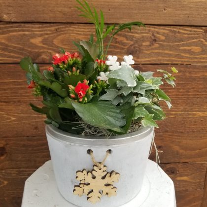 Place in bright indirect light. Water weekly or when the top 1″ of the soil is dry. A great indoor holiday decor or a hostess gift.