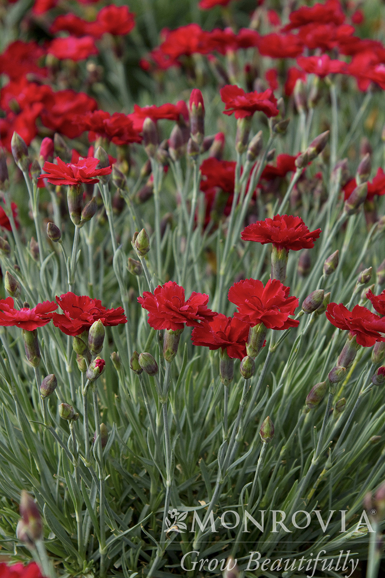A ground hugging carpet of gray-green foliage that shows off vivid scarlet red flowers. Excellent for use as edging for paths and borders or planted among rockery.