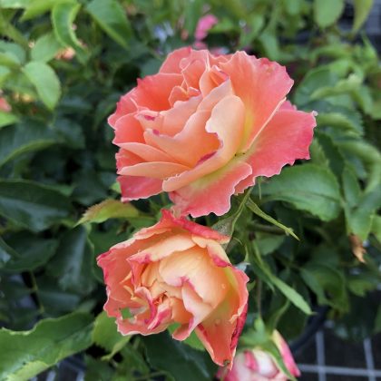 Easy Elegance® Coral Cove Rose. Incredible color, petite size, super disease resistant, what more could you want? This everblooming gem has double blooms whose outer petals are dark pink changing to orange and finally to bright yellow at the center. The small, perfectly rounded form would make it an outstanding informal hedge along a walkway or garden path. Highly disease resistant and own root.