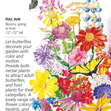 This charming mix of wildflowers, herbs, and low-growing plants transforms any area into a beautiful flowering meadow that provides nectar and habitat for a wide range of garden sprites.