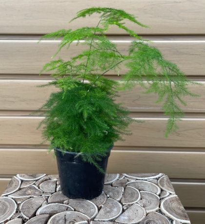 Plumosa Fern is a very beginner-friendly houseplant. It has feather-like leaves and is soft when touched. Keep evenly moist. Don't let it dry out completely. Plumosa ferns prefer bright, indirect light. Avoid hot, direct light. Not really a fern. Toxic.
