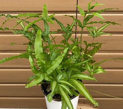 The Albo Lineata Pteris fern, or silver ribbon fern, prefers bright, indirect light and evenly moist soil, but make sure water can drain out, so the roots don't sit in water.