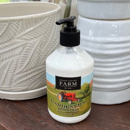 Ingredients: Purified water, olive oil, shea butter, cetyl alcohol, stearic acid, silicone, aloe vera, allantoin, vitamins A, E & D, fragrance and essential oils of rosemary and peppermint