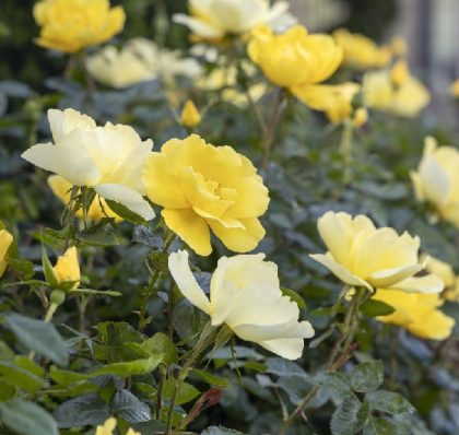 Upright bouquets of gorgeous, clean, yellow, double roses on a fuss-free shrub that will endure the trials of a long, hot summer with an unwavering blooming zeal. This own-root rose has outstanding disease resistance, is self-cleaning, and has proven to thrive coast to coast in heat and humidity as well as dry, hot summers. A dynamic hedge, barrier, or accent plant. Deciduous.