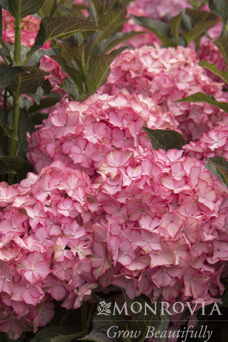 Huge, ball-shaped blooms with thick, intense pink florets on amazingly tough stems. Long-lasting and perfect for cut floral displays. Naturally compact shape has robust, dark green, leathery foliage with fantastic maroon color in spring and fiery cinnamon-red in fall. Resists scorch, even if watering is missed on a hot day! A new, exclusive Monrovia introduction. Deciduous.