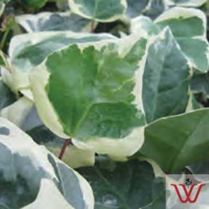 Large green and white variegated leaves are held high on long stems. It works well in hanging baskets and container gardens. It’s also heat and drought tolerant.