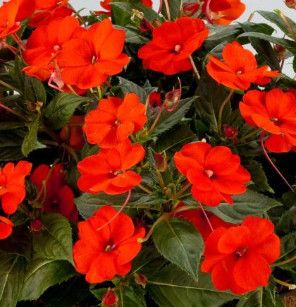 Electric Orange Impatiens is a compact dense, mound-forming, well-branched plant with bright orange flowers, up to 2 in. across.