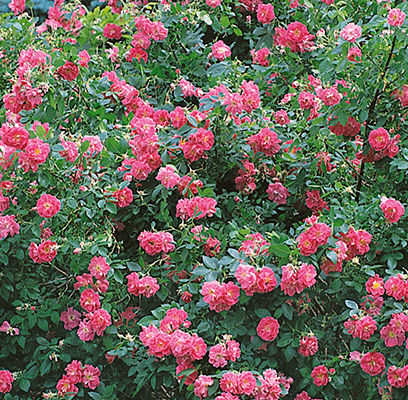 The first climber in the Explorer Series, this rose bears an abundance of fragrant blooms from early in summer until frost, in a gamut of shades from orchid-pink to fuchsia-red. Complemented by lustrous soft green foliage along the vigorous canes, the lovely flowers are followed by attractive hips of orange. Own root.