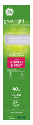 GE 40W LED Horticultural grow light fixture for flowering plants. 24″ length. Rated for 25,000 hour life.