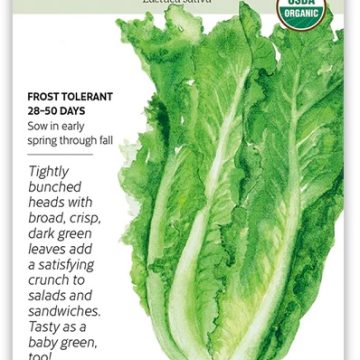 These pretty lettuce leaves grow high above the core for easy salad prep cutting. Compact heads produce high yields in a small space, while its bolt resistance allows for a long harvest. Resistant to downy mildew, lettuce leaf aphid, and Fusarium wilt. Seeds are pelletized with an organic coating for easy handling.
