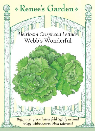 Love crunchy lettuce? The big wavy leaves of Webb’s Wonderful add juicy crunch to mixed and chopped salads, are perfect for tacos, and don’t get limp in sandwiches. This fine crisphead variety has big, green leaves fold tightly around crisp white heart. It is known for its heat tolerance and does better than most other lettuces were summer heat comes on fast. You can pick the whole head or just harvest the generous outside leaves for weeks.