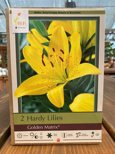 The Asiatic Lily 'Golden Matrix' produces flowers 3-6 inches wide. Should be planted in spring after danger of frost has passed. Plant 6 inches deep and space 9-12 inches apart. Can reach 13-24 inches tall.