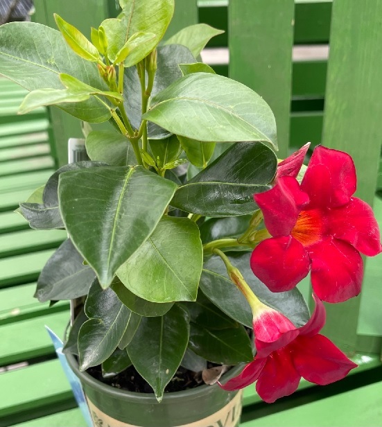 Naturally compact with limited vining, this well-behaved, mounded mandevilla with deep red blooms is stunning in an entry, patio or balcony, spilling out of a hanging basket. Superb annual summer color.