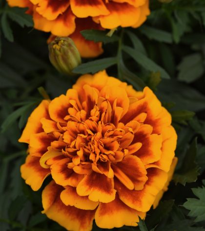 Marigolds are a favorite, no-fuss annual that can bring the color of sunshine to your garden, as well as butterflies, bees, ladybugs, and other beneficial insects. Give them full sun and some well-draining soil and watch them bloom from late spring until fall. They come in a range of sizes and flower colors including vanilla, orange, rust and yellow.