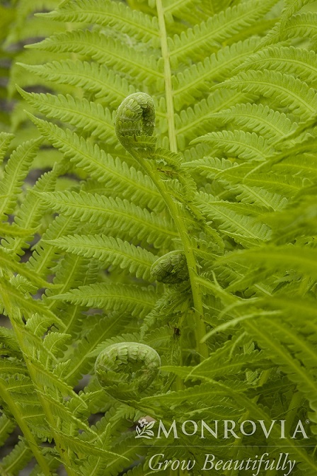 An excellent fern for woodland gardens and damp areas such as edging around a pond, with large, graceful, light green fronds that resemble showy ostrich plumes. Spreads slowly by underground stems. An herbaceous perennial.
