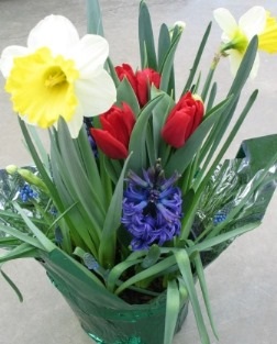 Bring spring into your home or office with a bulb garden. Each 8″ garden includes a mix of Tulips, Daffodils, Hyacinths and Grape Hyacinths. Watch them grow and transform into a fragrant spring bouquet. Place in bright to medium light. Let dry out between waterings. Basket not included.