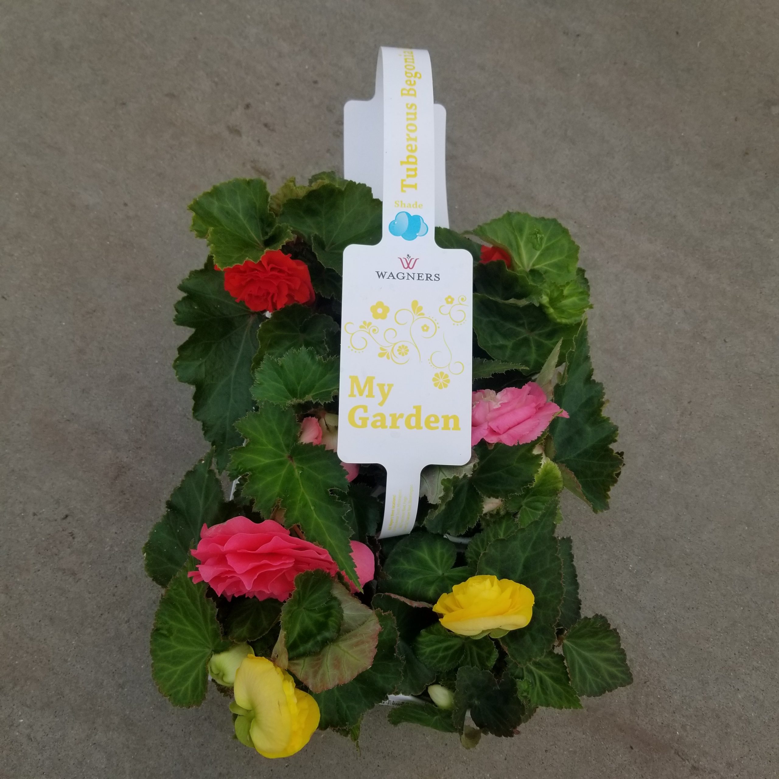 A 6-pak of assorted Tuberous Begonias ‘Nonstop Orange’, ‘Nonstop Pink’ and ‘Nonstop Yellow’. Great shade performance. 3″ large brightly colored blooms contrast with the dark foliage. Keep dry.