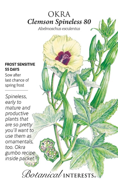 Originally developed at Clemson University and improved in 1980 for an earlier, more productive harvest. These heat-loving plants produce dark green, grooved, straight pods with a full-bodied flavor that okra lovers find utterly delectable. Related to hollyhocks, the plants' beautiful flowers make them a pretty addition to the flower garden and they attract pollinators.