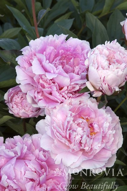 Absolutely stunning, with huge, fully double, fresh pink blooms are backed by a lush mound of glossy green, deer resistant foliage. An excellent background plant for spring bulbs, or for use as a spring specimen in beds and borders. A classic for cut flower arrangements. An herbaceous perennial.