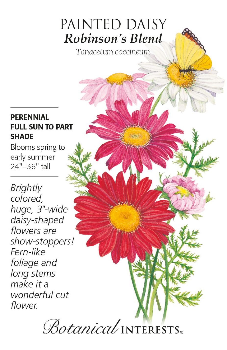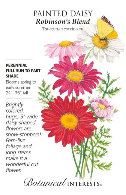 Bright and lovely blooms on a perennial plant! Long stems make Robinson's Blend an excellent cut flower. Combine with columbine and delphinium for a beautiful spring show. Also known as Persian daisy, flowers attract pollinators. Some people may experience an allergic contact dermatitis.