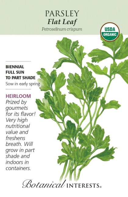 Grown as an annual and preferred by cooks for its robust flavor, flat-leaved parsley adds a fresh, tantalizing note to omelets, stews, vegetables, and even soft cheeses and rice. The flat leaves are easy to chop. Parsley is one of the most used culinary herbs around the globe; it is also considered to aid digestion. Grow indoors for fresh parsley year-round.