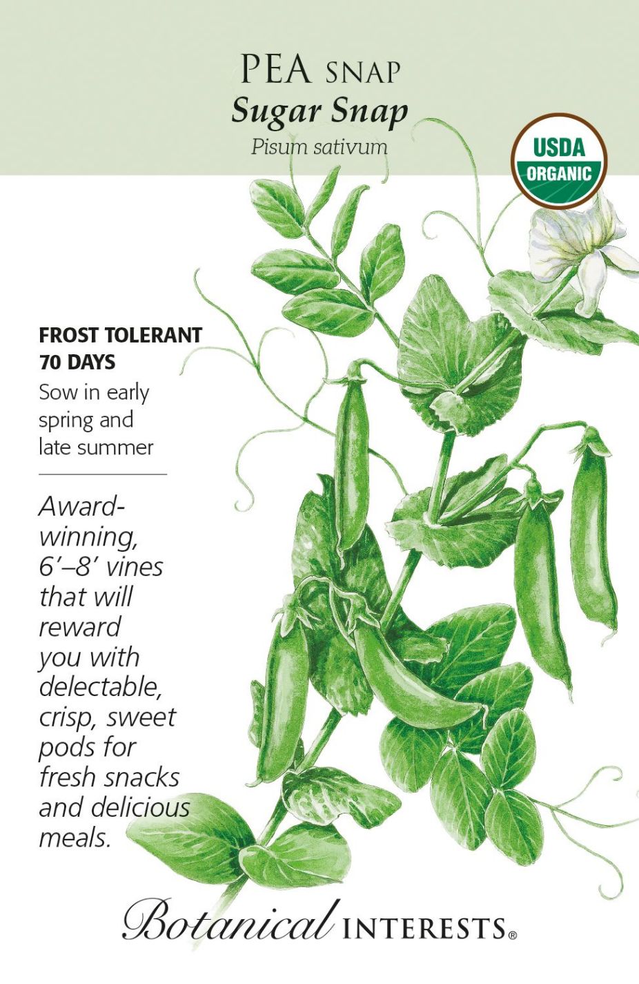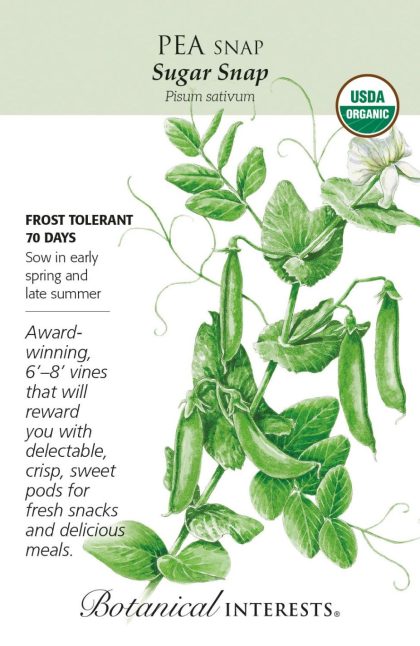 Snap peas are best eaten fresh and there's nothing like picking them right off the vine. The French call edible podded peas mange tout meaning “eat all.” 'Sugar Snap' provides an extended harvest of thick, crunchy 3″ pods filled with flavorful peas. Vines tolerate some heat. Grow climbing 6'–8' vines on poles or a trellis.