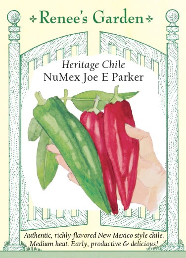 Our favorite authentic New Mexico style chile with long, straight, 6-7 inch meaty pods, a medium heat level and rich, full flavor. Early-producing plants have heavy, consistent yields, and dense foliage that protects pods from sunburn. Harvest thick-walled, juicy pods at either the green or red stage. Perfect for memorable green or red chile, wonderful salsas, or for grilling, sautéing or adding gentle heat to any dish. A perfect choice for chile aficionados who love to cook!