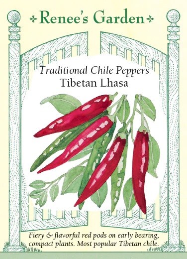 EXCLUSIVE – These fragrant, fiery, flavorful 4 inch chiles are the most widely grown variety in Tibet, where they are made into a spicy sauce or a tongue-tingling paste used in many dishes or served as a condiment that adds heat and savor to everyday meals. Plants bear heavy sets of multiple straight pods that quickly mature from green to rich deep red early in the season, and keep producing for long extended harvesting. We are pleased to introduce this unique variety to U.S. gardeners.