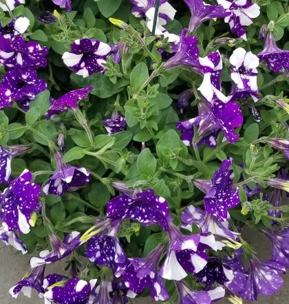 This unique petunia truly resembles a night sky with its starry white-on-purple pattern. As the temperatures change, so does the number of speckles. Suitable for a container mix or in the garden.